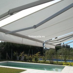 Sistema de toldo creado para la protección y duración del conjunto, ocultando tanto los brazos como la lona una vez cerrado el cofre. Inclinación de 0º a 60º tanto a pared como a techo. Posibilidad de desplazar los brazos hacia adentro del cofre, mejorando sus prestaciones. Accionamiento manual y eléctrico.